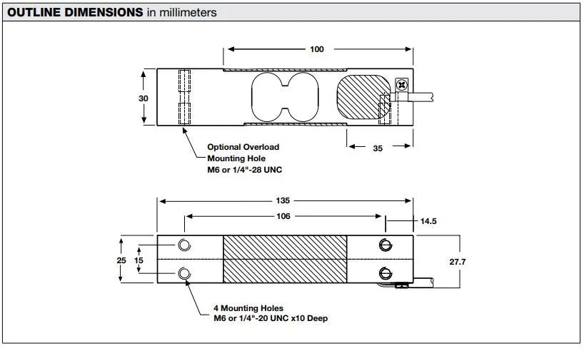 The small physical size, combined with high accuracy and low cost, makes this load cell ideally suited for low profile bench and counting scales. A special humidity resistant protective coating assures long-term stability over the entire compensated temperature range.