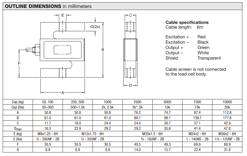 • Capacities: 50 to 10000 kg (50 to 20k lbs)