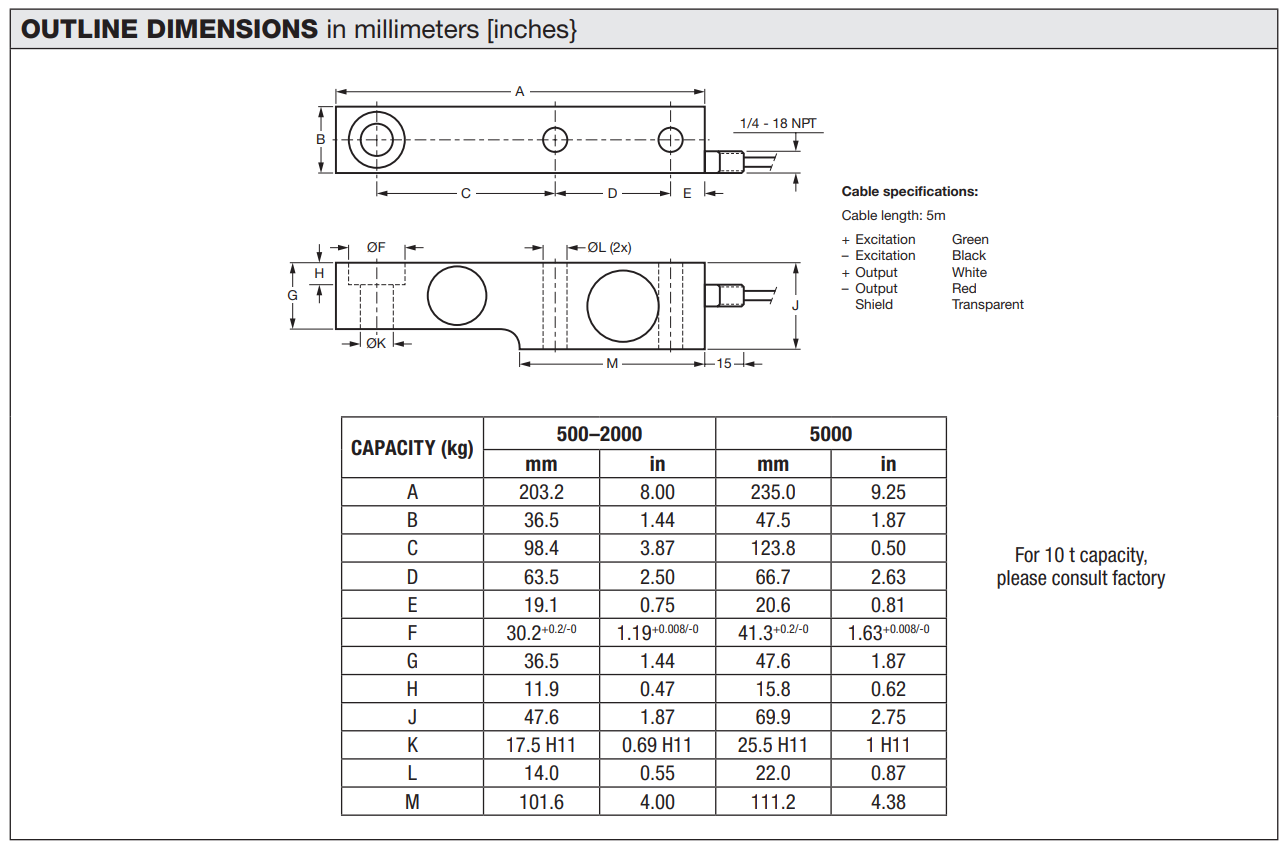 • Capacities: 0.5 t, 1 t, 2 t, 5 t, 10 t, 1k lbs., 2k lbs., 5k