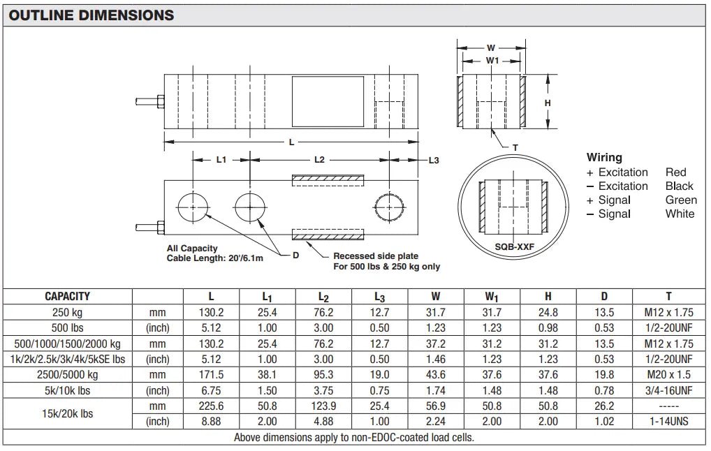 It is insensitive to side loading and capable of reversed loading. Models SQB and SQB-F are constructed of alloy steel and fully potted with special chemical compounds to IP67 to protect the cell from water and moisture damage.
